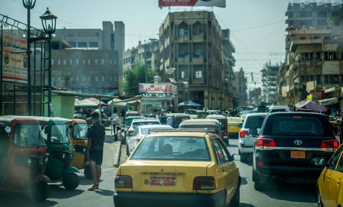 Travlhed i Bagdads gader er noget, soldaterne i sikrings- og eskortekompagniet skal forholde sig til. Foto: PIO NMI / Forsvaret