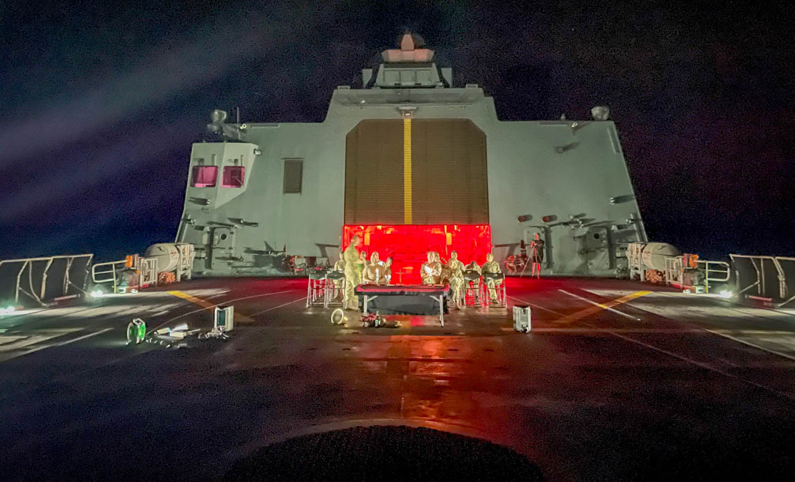 Gudstjeneste på fregatten Niels Juel foregik med en stjerneklar himmel som kulisse - en helt særlig markering af Allehelgensdag. Foto: Forsvaret